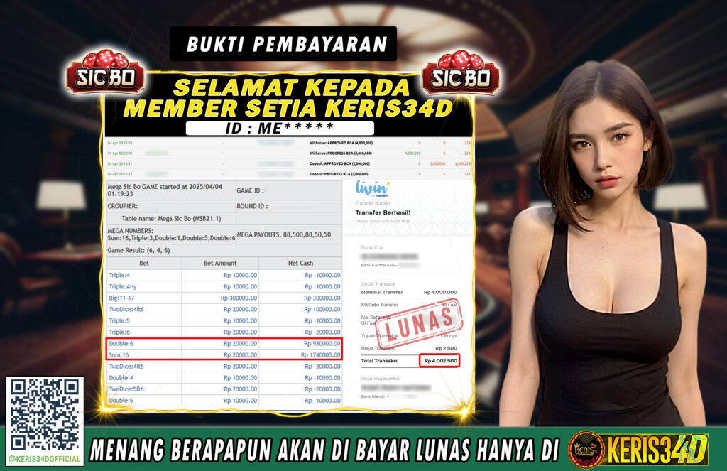 KERIS34D dikenal sebagai situs terpercaya yang selalu menghadirkan pengalaman bermain slot online yang aman, fair, dan berlisensi resmi. Di sini, kami tidak hanya sekadar memberikan janji, tapi bukti nyata berupa slip kemenangan yang dapat Anda lihat secara langsung.