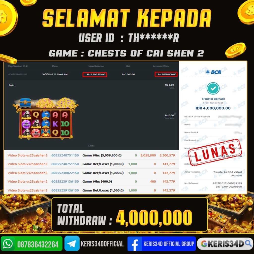 JACKPOT SLOT GACOR MAIN CHESTS OF CAI SHEN 2 07 OCTOBER 2025