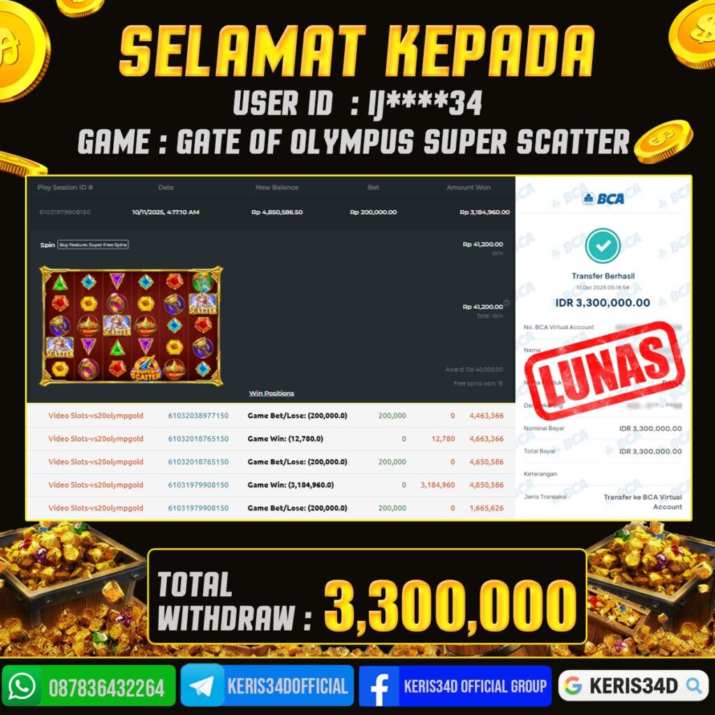 KERIS34D dikenal sebagai situs terpercaya yang selalu menghadirkan pengalaman bermain slot online yang aman, fair, dan berlisensi resmi. Di sini, kami tidak hanya sekadar memberikan janji, tapi bukti nyata berupa slip kemenangan yang dapat Anda lihat secara langsung.