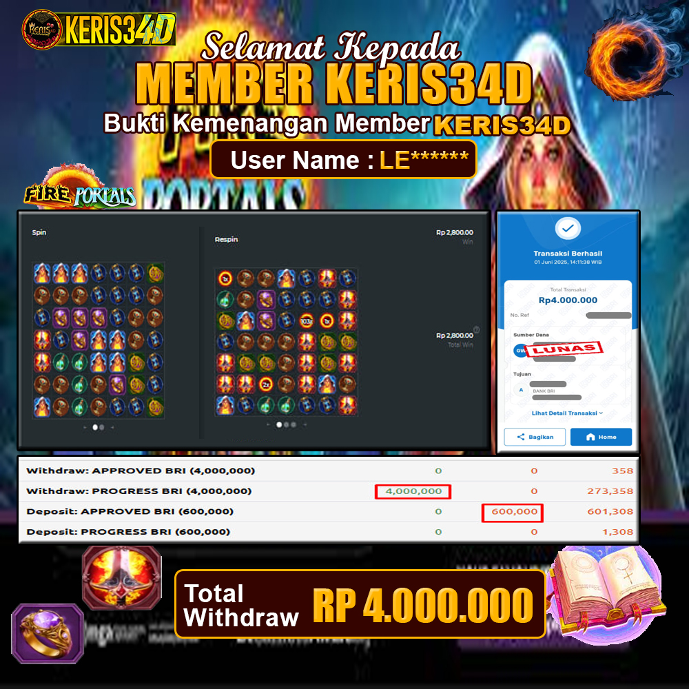 Setiap hari, member KERIS34D berhasil meraih jackpot besar dari berbagai provider slot ternama yang kami sediakan, seperti Pragmatic Play, Habanero, PG Soft, dan masih banyak lagi. Kami secara rutin menampilkan bukti screenshot atau rekapan kemenangan yang berhasil diraih, mulai dari kemenangan ratusan ribu hingga puluhan juta rupiah. Semua slip kemenangan ini kami hadirkan untuk membuktikan bahwa di KERIS34D, peluang menang itu nyata