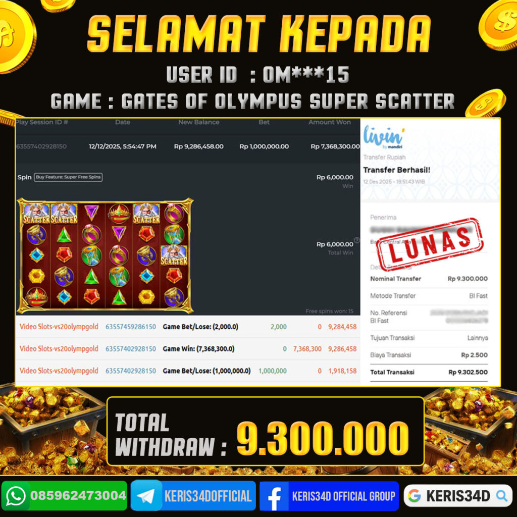 Setiap hari, member KERIS34D berhasil meraih jackpot besar dari berbagai provider slot ternama yang kami sediakan, seperti Pragmatic Play, Habanero, PG Soft, dan masih banyak lagi. Kami secara rutin menampilkan bukti screenshot atau rekapan kemenangan yang berhasil diraih, mulai dari kemenangan ratusan ribu hingga puluhan juta rupiah. Semua slip kemenangan ini kami hadirkan untuk membuktikan bahwa di KERIS34D, peluang menang itu nyata