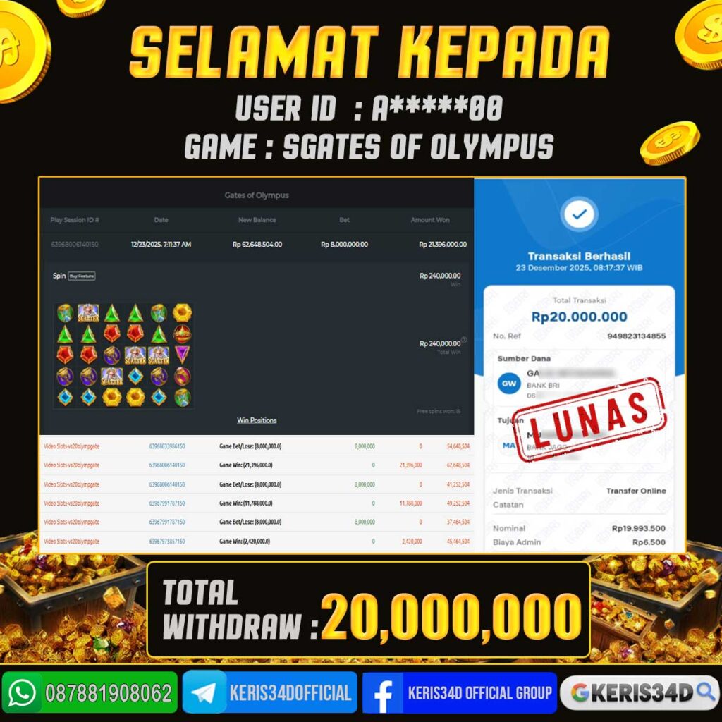 JACKPOT SLOT GACOR GATES OF OLYMPUS 23 DESEMBER 2025, Jackpot Slot Gacor, Kemenangan Slot, Bukti Kemenangan Slot, Kemenangan PRAGMATIC PLAY, Menang Slot online, Slot Gacor, Situs Aman Terpercaya, WD Berapapun Pasti DI Bayar Tuntas, Maxwin Slot Online.