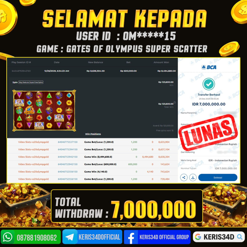 JACKPOT SLOT GACOR MAIN GATES OF OLYMPUS SUPER SCATTER 25 DESEMBER 2025