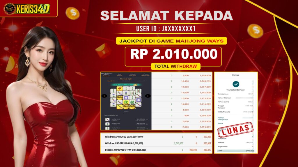KERIS34D dikenal sebagai situs terpercaya yang selalu menghadirkan pengalaman bermain slot online yang aman, fair, dan berlisensi resmi. Di sini, kami tidak hanya sekadar memberikan janji, tapi bukti nyata berupa slip kemenangan yang dapat Anda lihat secara langsung.