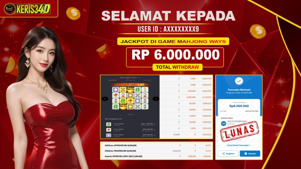 Setiap hari, member KERIS34D berhasil meraih jackpot besar dari berbagai provider slot ternama yang kami sediakan, seperti Pragmatic Play, Habanero, PG Soft, dan masih banyak lagi. Kami secara rutin menampilkan bukti screenshot atau rekapan kemenangan yang berhasil diraih, mulai dari kemenangan ratusan ribu hingga puluhan juta rupiah. Semua slip kemenangan ini kami hadirkan untuk membuktikan bahwa di KERIS34D, peluang menang itu nyata