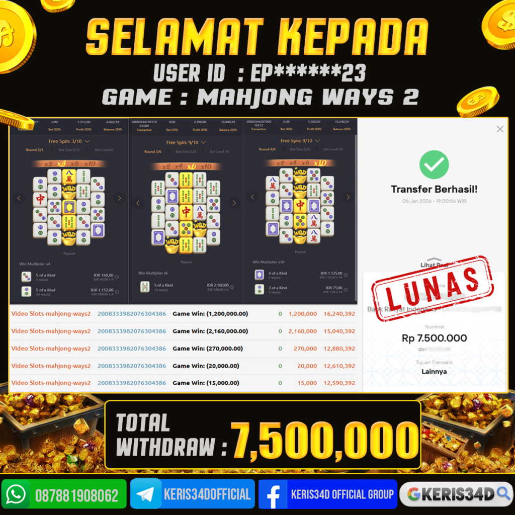 TOTAL KEMENANGAN : Rp. 7.500.000