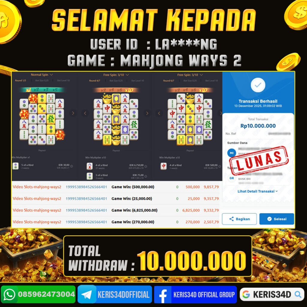 JACKPOT SLOT GACOR MAIN MAHJONG WAYS 2 13 DESEMBER 2025