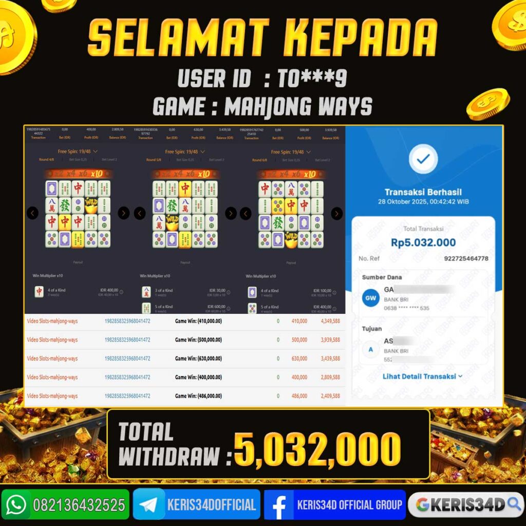 JACKPOT SLOT GACOR MAIN MAHJONG WAYS 28 OKTOBER 2025, Jackpot Slot Gacor, Kemenangan Slot, Bukti Kemenangan Slot, Kemenangan PGSOFT, Menang Slot online, Slot Gacor, Situs Aman Terpercaya, WD Berapapun Pasti DI Bayar Tuntas, Maxwin Slot Online.