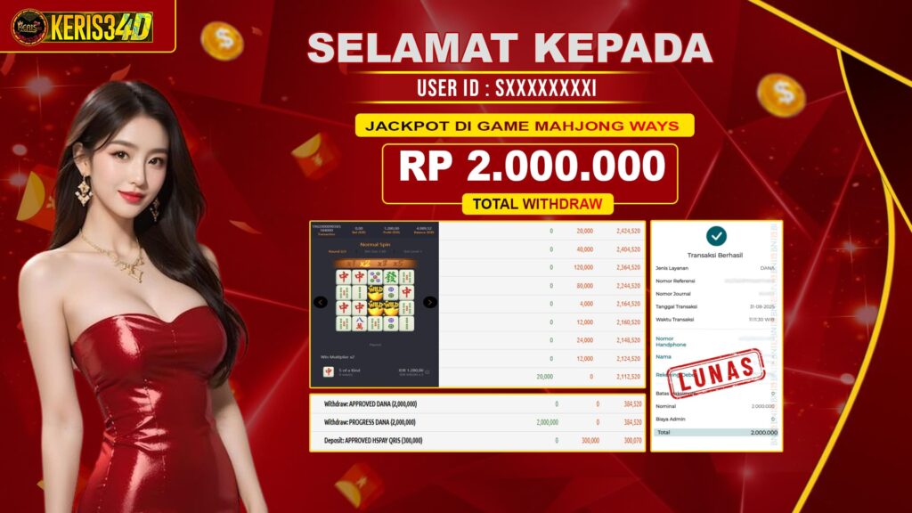 Setiap hari, member KERIS34D berhasil meraih jackpot besar dari berbagai provider slot ternama yang kami sediakan, seperti Pragmatic Play, Habanero, PG Soft, dan masih banyak lagi. Kami secara rutin menampilkan bukti screenshot atau rekapan kemenangan yang berhasil diraih, mulai dari kemenangan ratusan ribu hingga puluhan juta rupiah. Semua slip kemenangan ini kami hadirkan untuk membuktikan bahwa di KERIS34D, peluang menang itu nyata