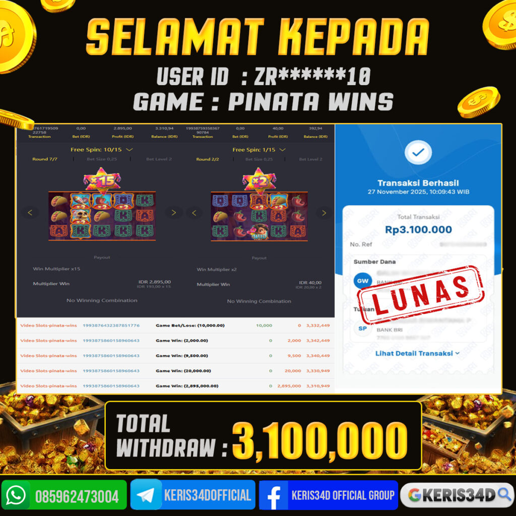 JACKPOT SLOT GACOR MAIN PINATA WINS 27 NOVEMBER 2025