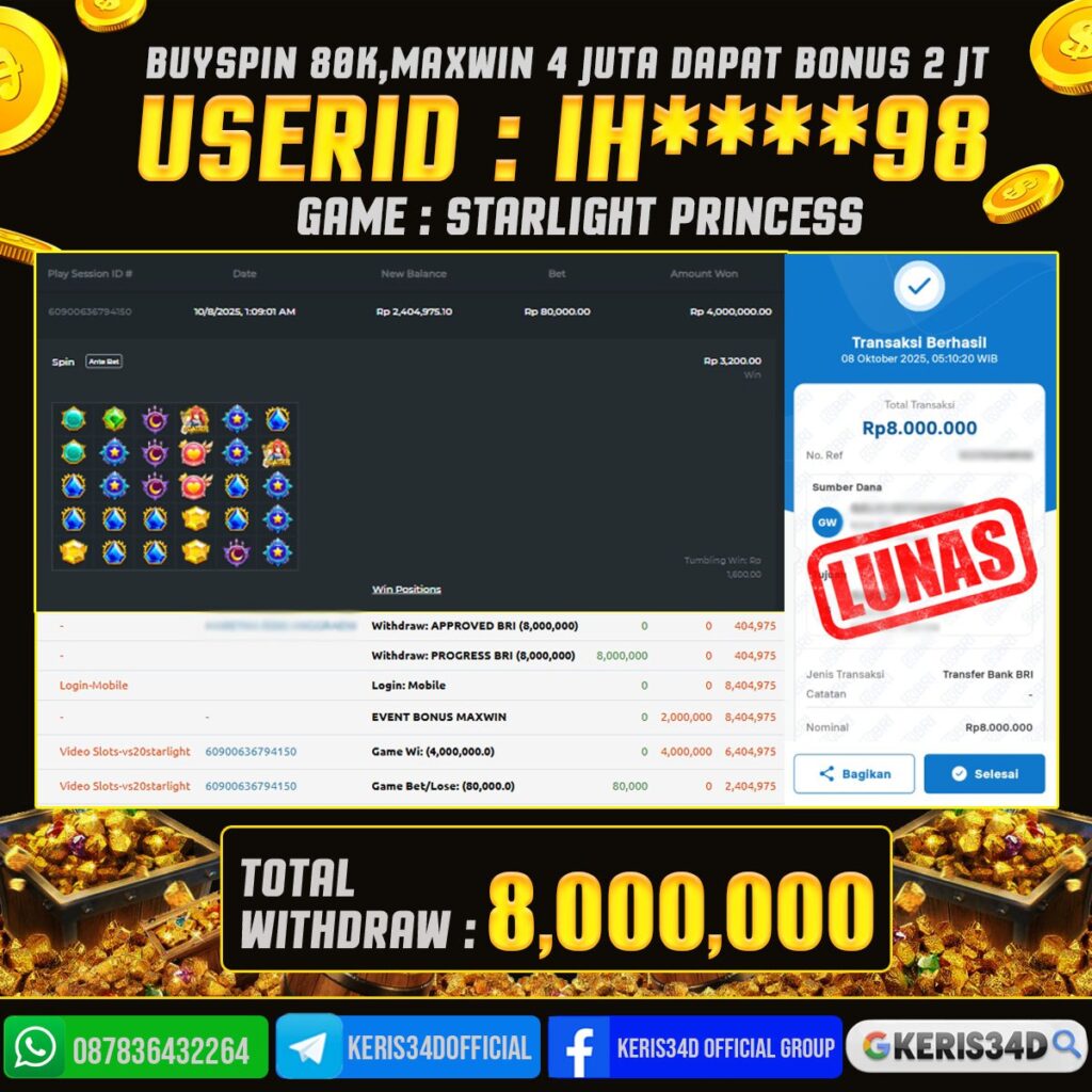 KERIS34D dikenal sebagai situs terpercaya yang selalu menghadirkan pengalaman bermain slot online yang aman, fair, dan berlisensi resmi. Di sini, kami tidak hanya sekadar memberikan janji, tapi bukti nyata berupa slip kemenangan yang dapat Anda lihat secara langsung.