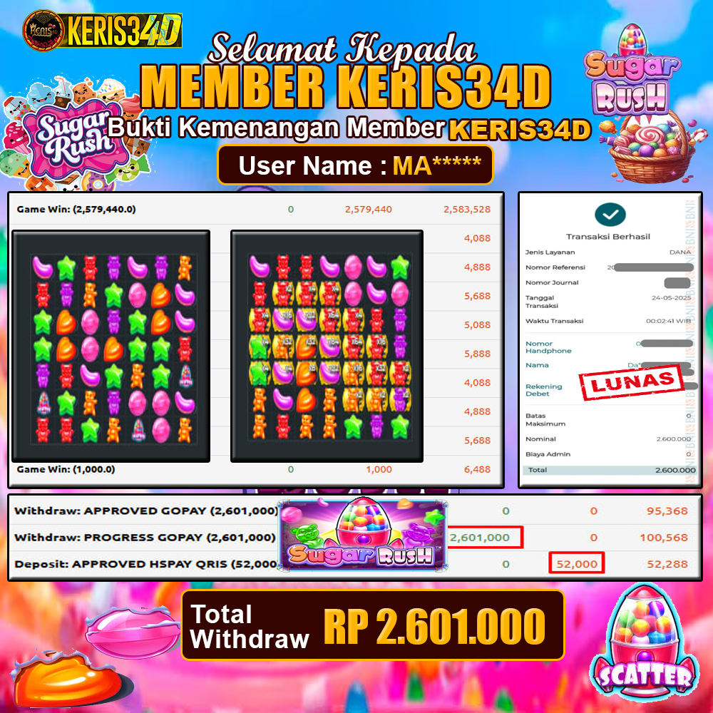 JACKPOT SLOT GACOR SUGAR RUSH 26 MEI 2025, Jackpot Slot Gacor, Kemenangan Slot, Bukti Kemenangan Slot, Kemenangan PRAGMATIC PLAY, Menang Slot online, Slot Gacor, Situs Aman Terpercaya, WD Berapapun Pasti DI Bayar Tuntas, Maxwin Slot Online.