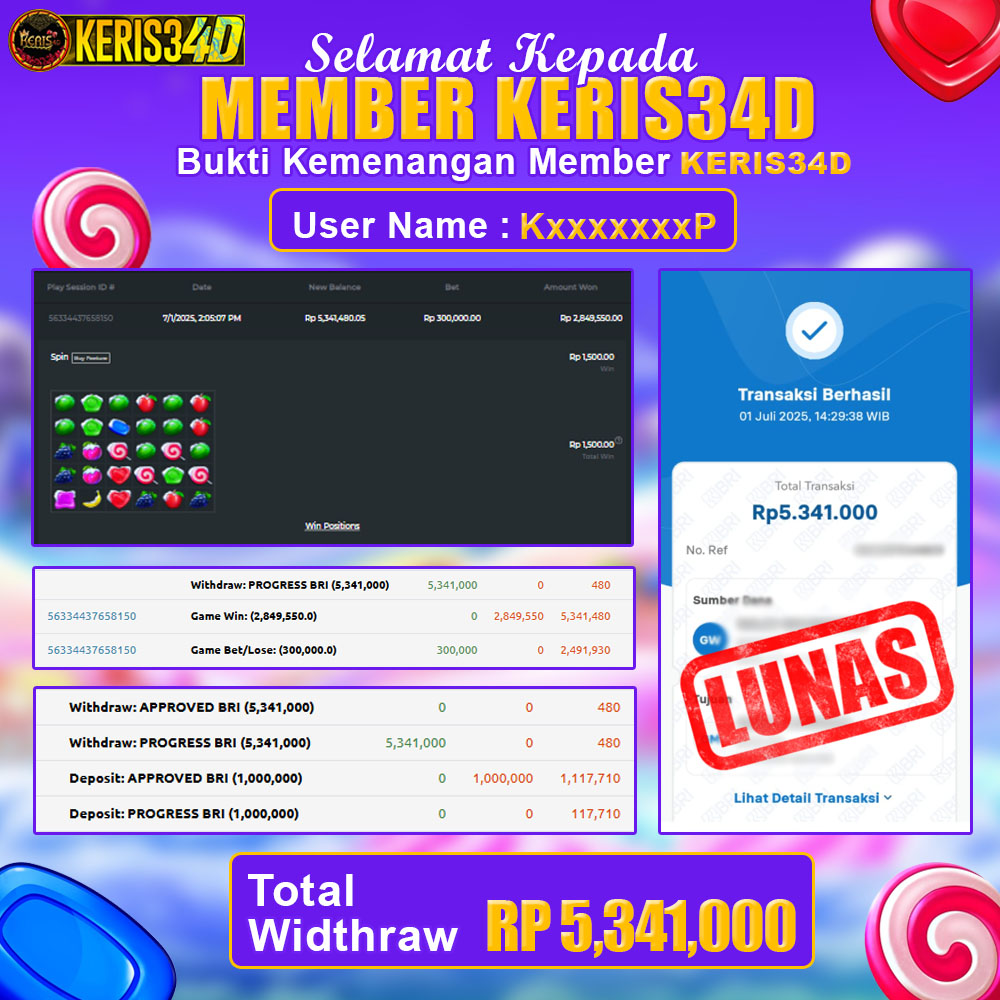 Setiap hari, member KERIS34D berhasil meraih jackpot besar dari berbagai provider slot ternama yang kami sediakan, seperti Pragmatic Play, Habanero, PG Soft, dan masih banyak lagi. Kami secara rutin menampilkan bukti screenshot atau rekapan kemenangan yang berhasil diraih, mulai dari kemenangan ratusan ribu hingga puluhan juta rupiah. Semua slip kemenangan ini kami hadirkan untuk membuktikan bahwa di KERIS34D, peluang menang itu nyata