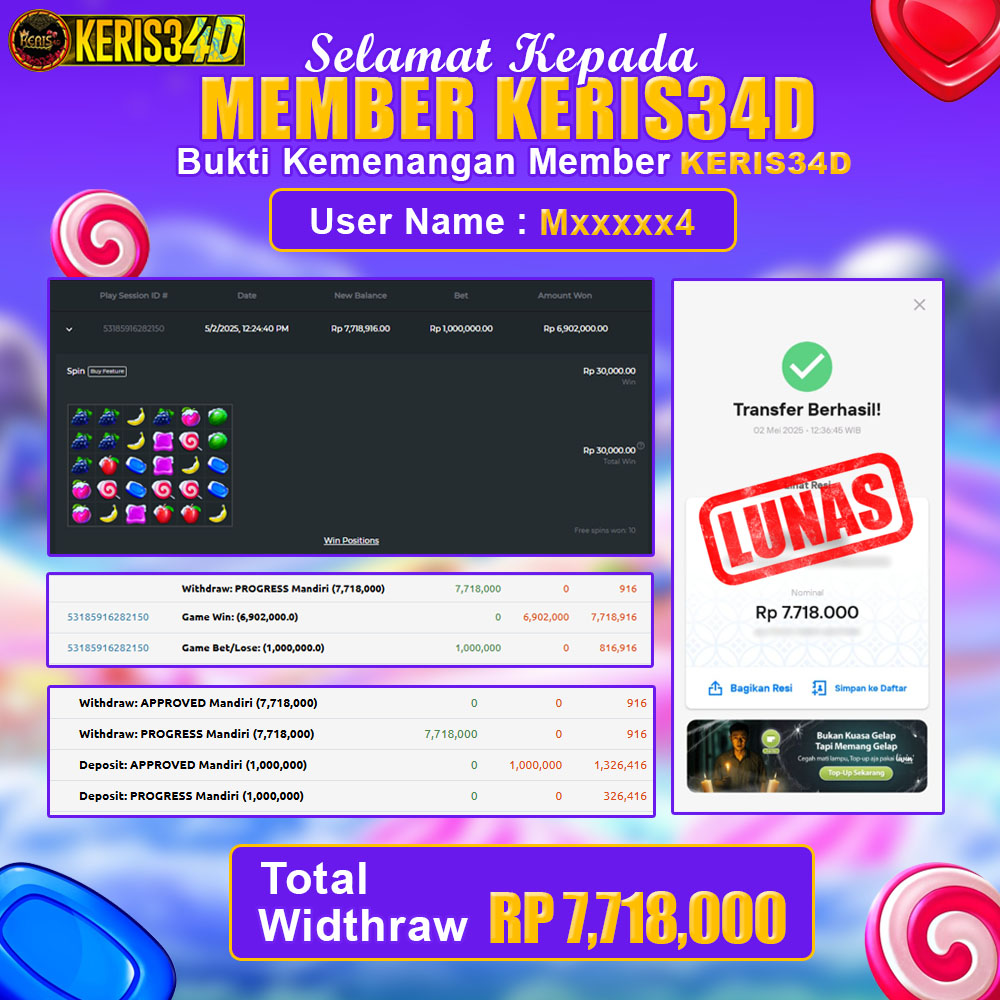 TOTAL KEMENANGAN : Rp. 7.718.000