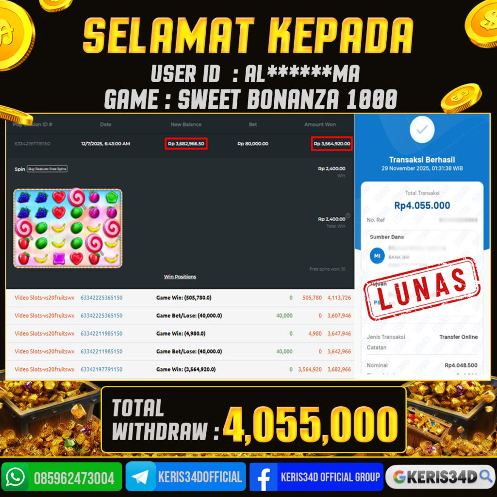 KERIS34D dikenal sebagai situs terpercaya yang selalu menghadirkan pengalaman bermain slot online yang aman, fair, dan berlisensi resmi. Di sini, kami tidak hanya sekadar memberikan janji, tapi bukti nyata berupa slip kemenangan yang dapat Anda lihat secara langsung.