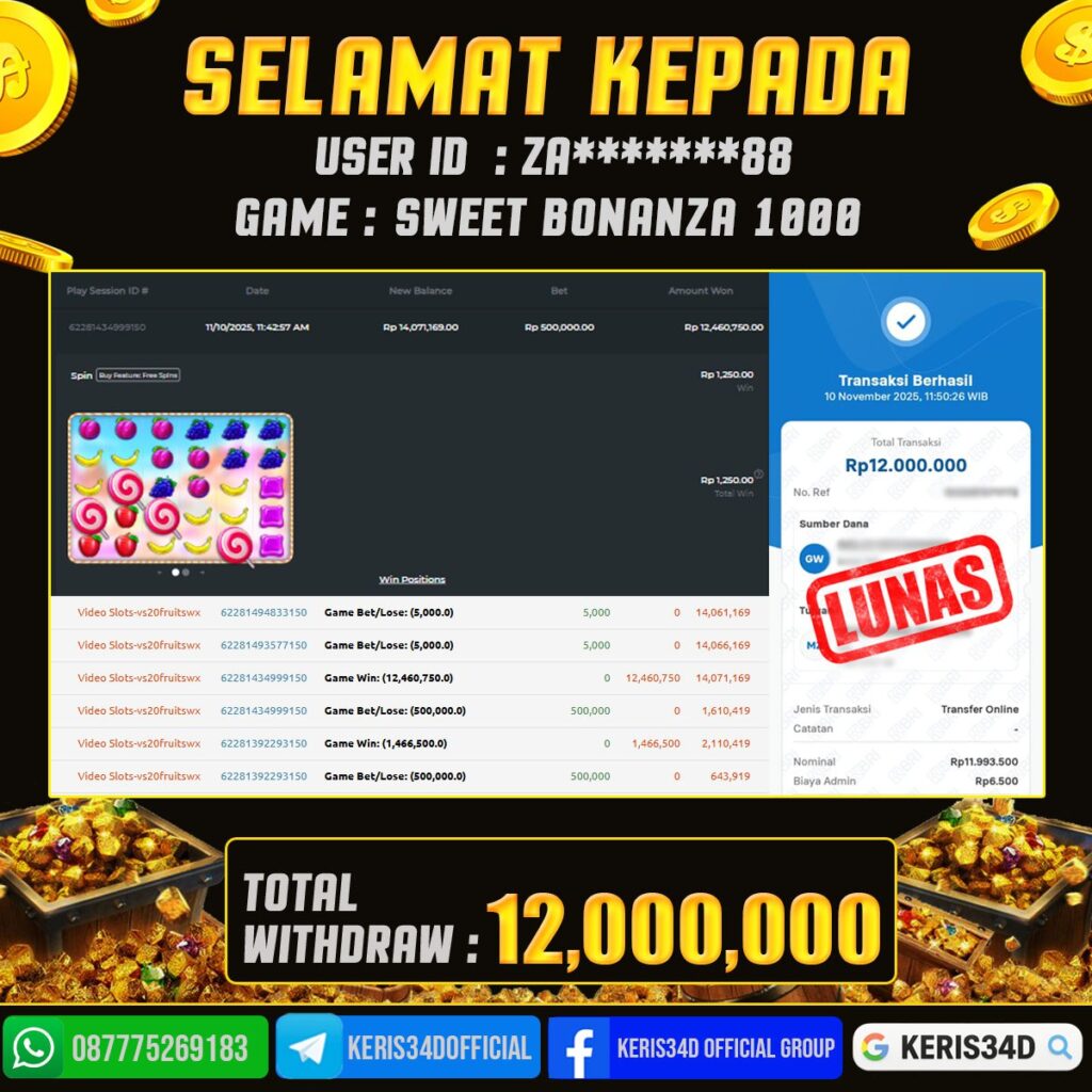 Setiap hari, member KERIS34D berhasil meraih jackpot besar dari berbagai provider slot ternama yang kami sediakan, seperti Pragmatic Play, Habanero, PG Soft, dan masih banyak lagi. Kami secara rutin menampilkan bukti screenshot atau rekapan kemenangan yang berhasil diraih, mulai dari kemenangan ratusan ribu hingga puluhan juta rupiah. Semua slip kemenangan ini kami hadirkan untuk membuktikan bahwa di KERIS34D, peluang menang itu nyata