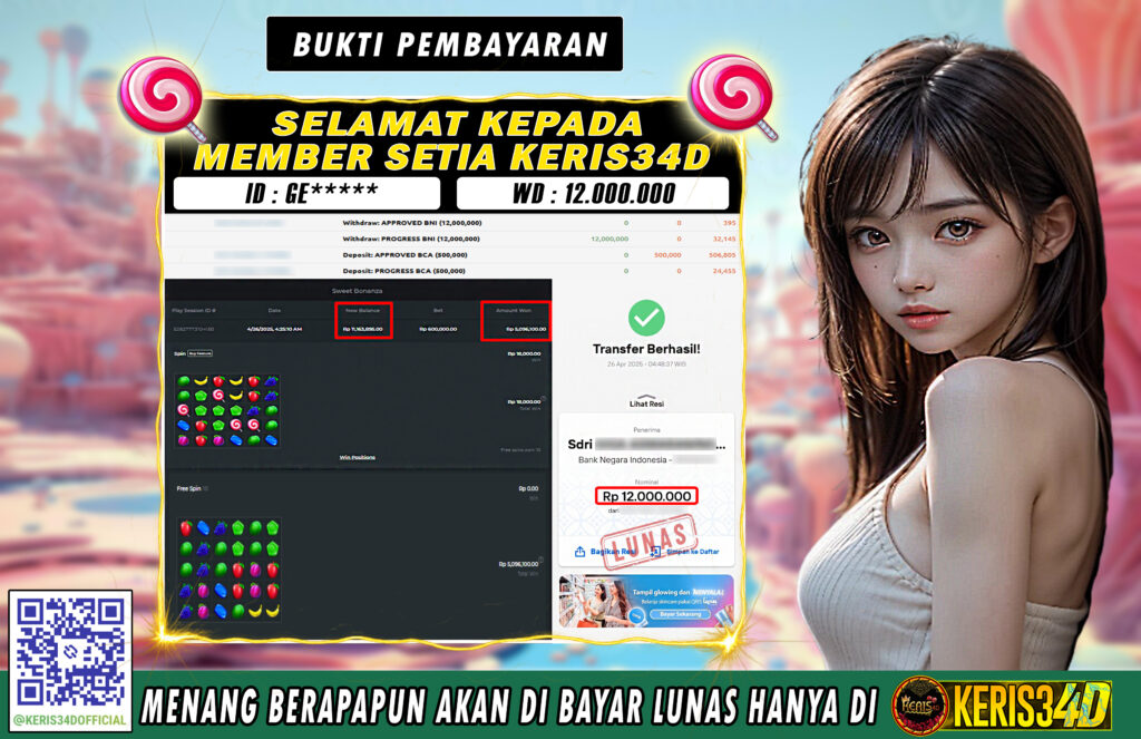 Setiap hari, member KERIS34D berhasil meraih jackpot besar dari berbagai provider slot ternama yang kami sediakan, seperti Pragmatic Play, Habanero, PG Soft, dan masih banyak lagi. Kami secara rutin menampilkan bukti screenshot atau rekapan kemenangan yang berhasil diraih, mulai dari kemenangan ratusan ribu hingga puluhan juta rupiah. Semua slip kemenangan ini kami hadirkan untuk membuktikan bahwa di KERIS34D, peluang menang itu nyata