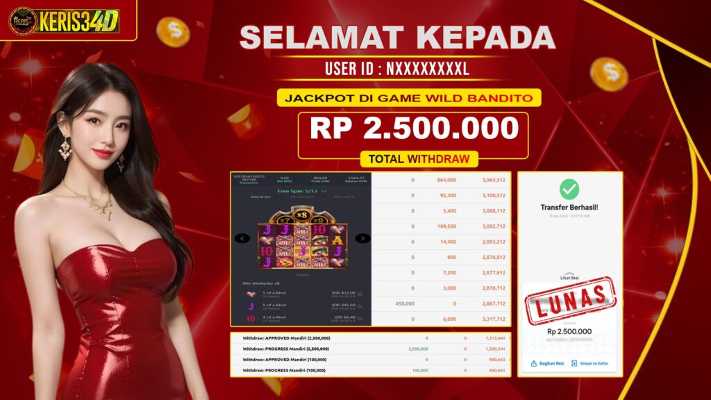Setiap hari, member KERIS34D berhasil meraih jackpot besar dari berbagai provider slot ternama yang kami sediakan, seperti Pragmatic Play, Habanero, PG Soft, dan masih banyak lagi. Kami secara rutin menampilkan bukti screenshot atau rekapan kemenangan yang berhasil diraih, mulai dari kemenangan ratusan ribu hingga puluhan juta rupiah. Semua slip kemenangan ini kami hadirkan untuk membuktikan bahwa di KERIS34D, peluang menang itu nyata