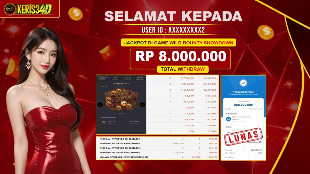 Setiap hari, member KERIS34D berhasil meraih jackpot besar dari berbagai provider slot ternama yang kami sediakan, seperti Pragmatic Play, Habanero, PG Soft, dan masih banyak lagi. Kami secara rutin menampilkan bukti screenshot atau rekapan kemenangan yang berhasil diraih, mulai dari kemenangan ratusan ribu hingga puluhan juta rupiah. Semua slip kemenangan ini kami hadirkan untuk membuktikan bahwa di KERIS34D, peluang menang itu nyata