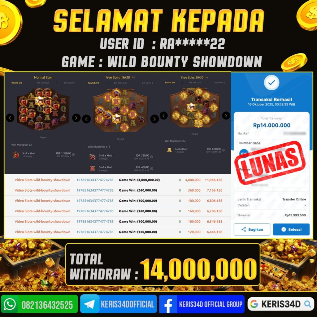JACKPOT SLOT GACOR WILD BOUNTY SHOWDOWN 16 OKTOBER 2025
