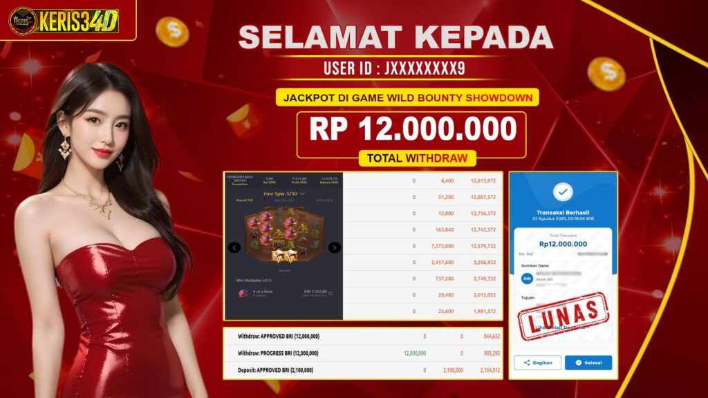 Setiap hari, member KERIS34D berhasil meraih jackpot besar dari berbagai provider slot ternama yang kami sediakan, seperti Pragmatic Play, Habanero, PG Soft, dan masih banyak lagi. Kami secara rutin menampilkan bukti screenshot atau rekapan kemenangan yang berhasil diraih, mulai dari kemenangan ratusan ribu hingga puluhan juta rupiah. Semua slip kemenangan ini kami hadirkan untuk membuktikan bahwa di KERIS34D, peluang menang itu nyata