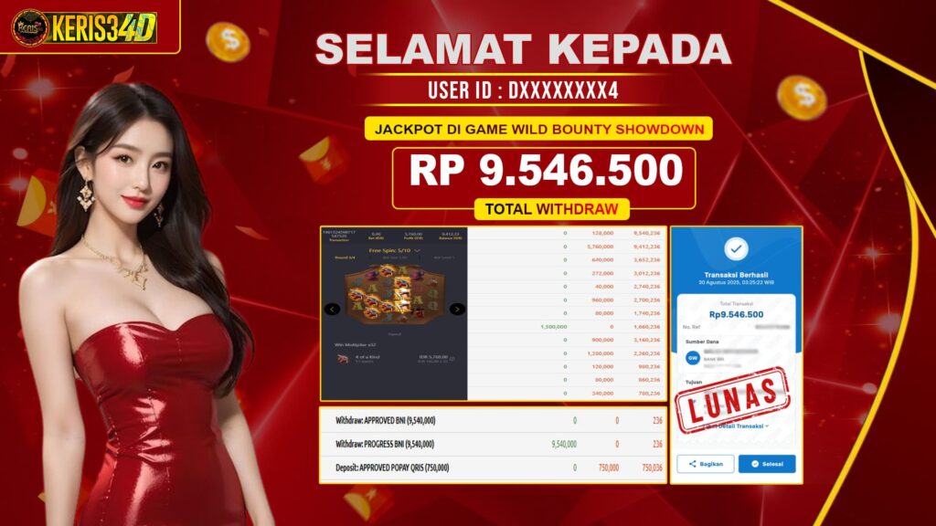 Setiap hari, member KERIS34D berhasil meraih jackpot besar dari berbagai provider slot ternama yang kami sediakan, seperti Pragmatic Play, Habanero, PG Soft, dan masih banyak lagi. Kami secara rutin menampilkan bukti screenshot atau rekapan kemenangan yang berhasil diraih, mulai dari kemenangan ratusan ribu hingga puluhan juta rupiah. Semua slip kemenangan ini kami hadirkan untuk membuktikan bahwa di KERIS34D, peluang menang itu nyata